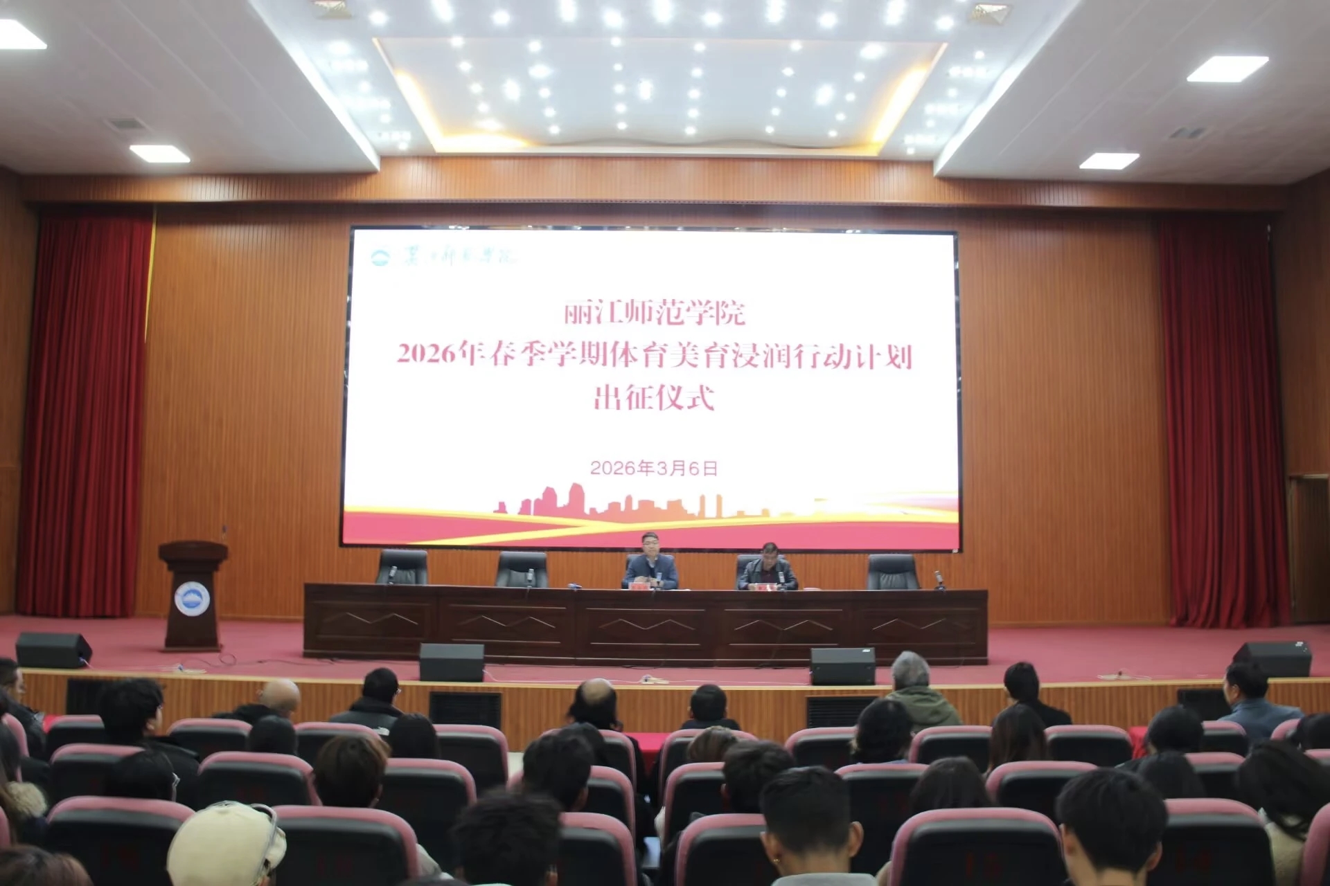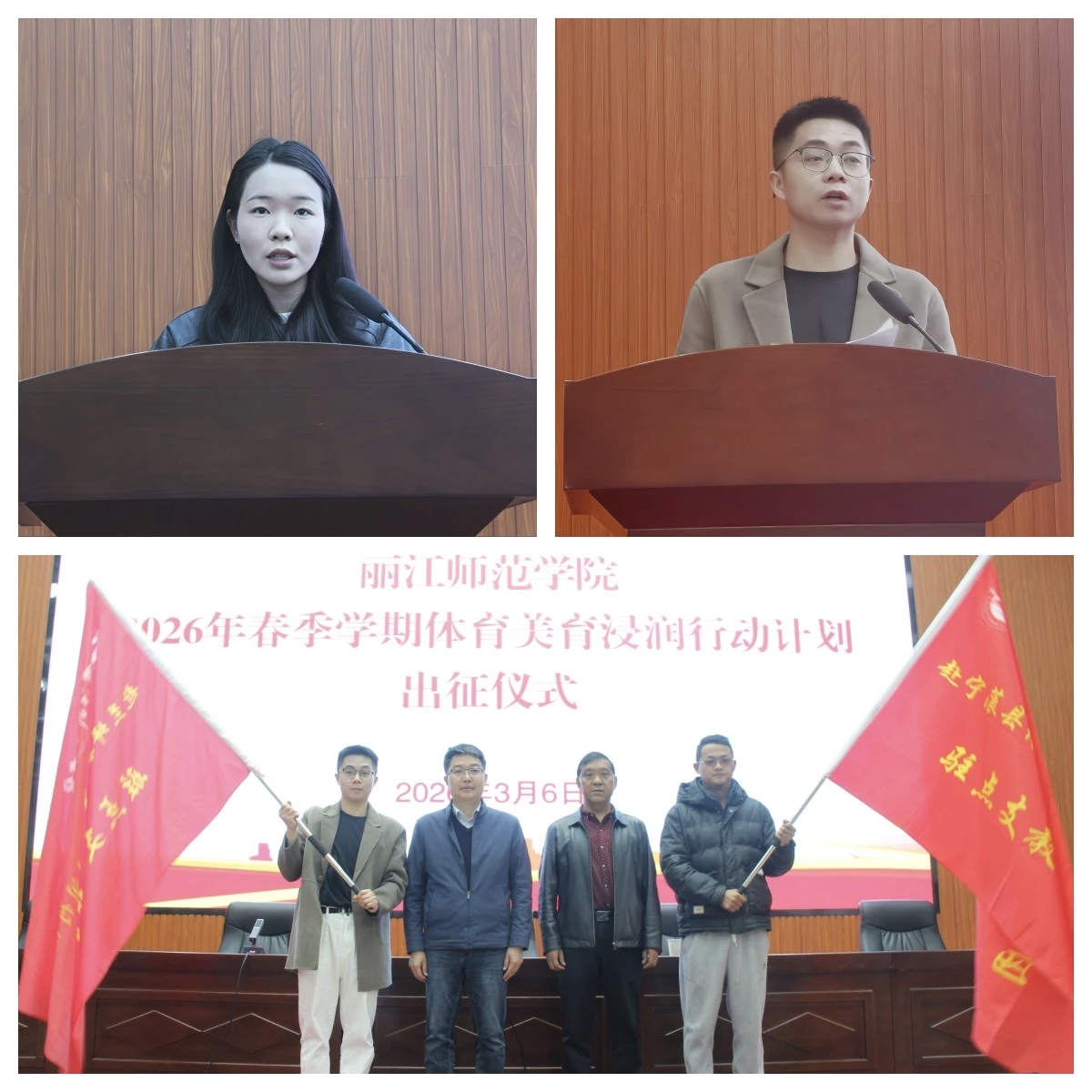 3月6日上午,学校2026年春季学期“体育美育浸润行动计划”出征仪式在图书馆报告厅举行。仪式由校党委副书记章之尧主持,校长陈本辉出席仪式并讲话。